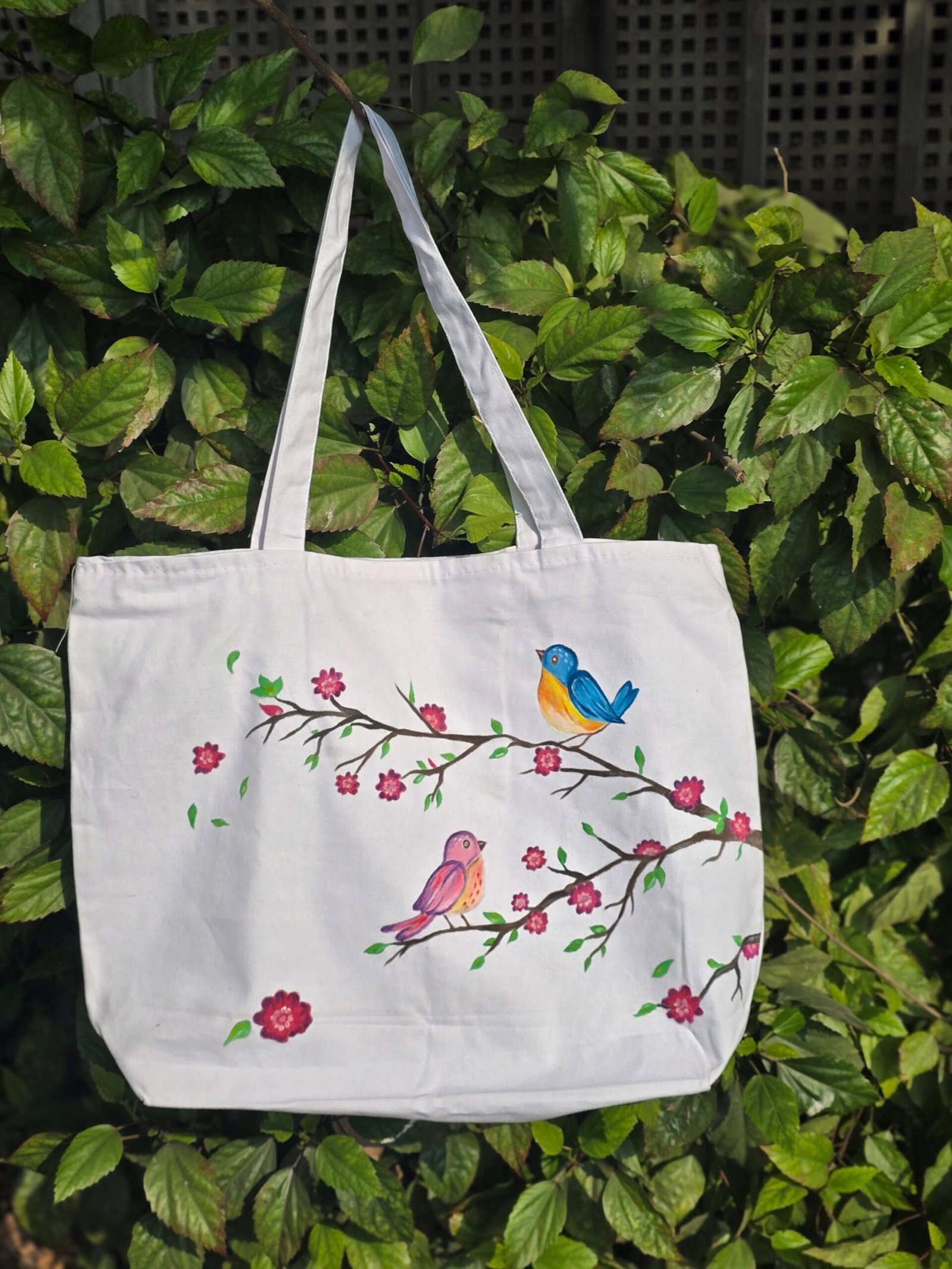 The painted large size white tote bag is not just an accessory; it’s a combination of art and practicality to elevate your everyday carry options. Make this timeless yet versatile bag yours today and experience convenience and sophistication redefined!